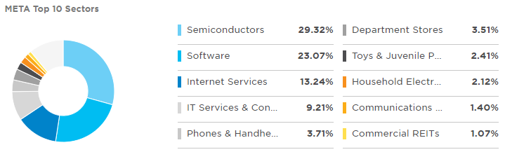 META ETF가 가지고 있는 탑10 산업을 위의 그래프와 같다.