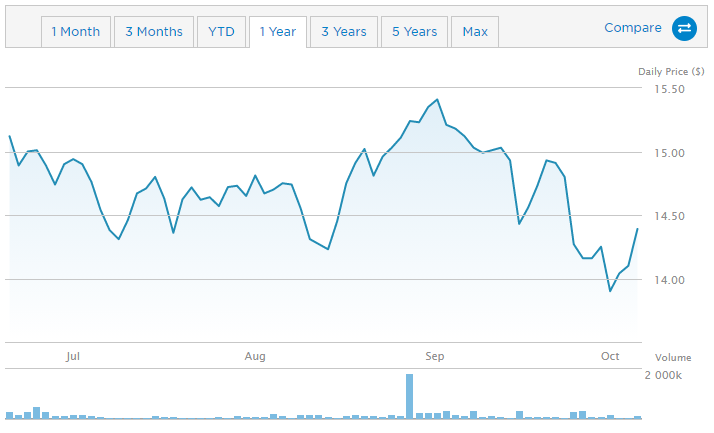 21년 6월 말에 상장되어 3~4개월의 시간이 흐르는 동안 14~15달러 사이를 왔다 갔다하며