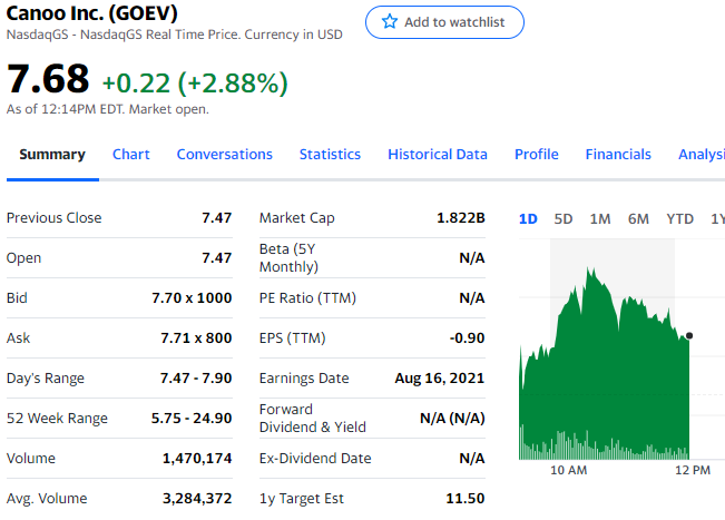 카누의 경우 22년 4분기에 첫 차량 생산이 예정되어 있기 때문에