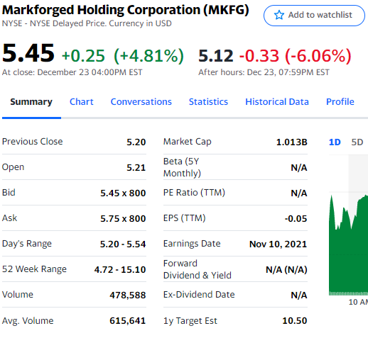 데스크탑 메탈의 시가총액은 1.664B, 마크포지드의 시가총액은 1.013B로