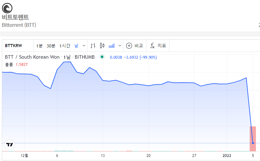현재 BTT 코인은 22년 1월 4일 기준으로