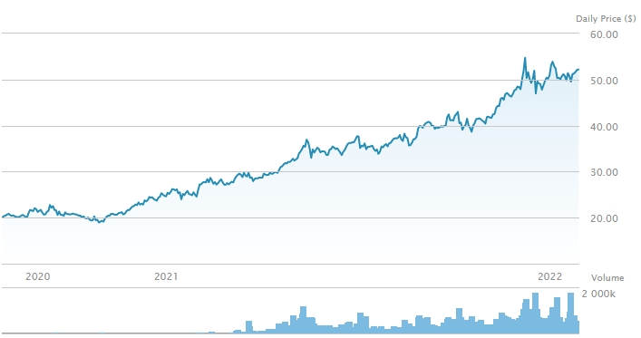 2020년 7월 상장한 이후 2021년에만 2배 이상 주가가 상승하는 모습을 보였는데