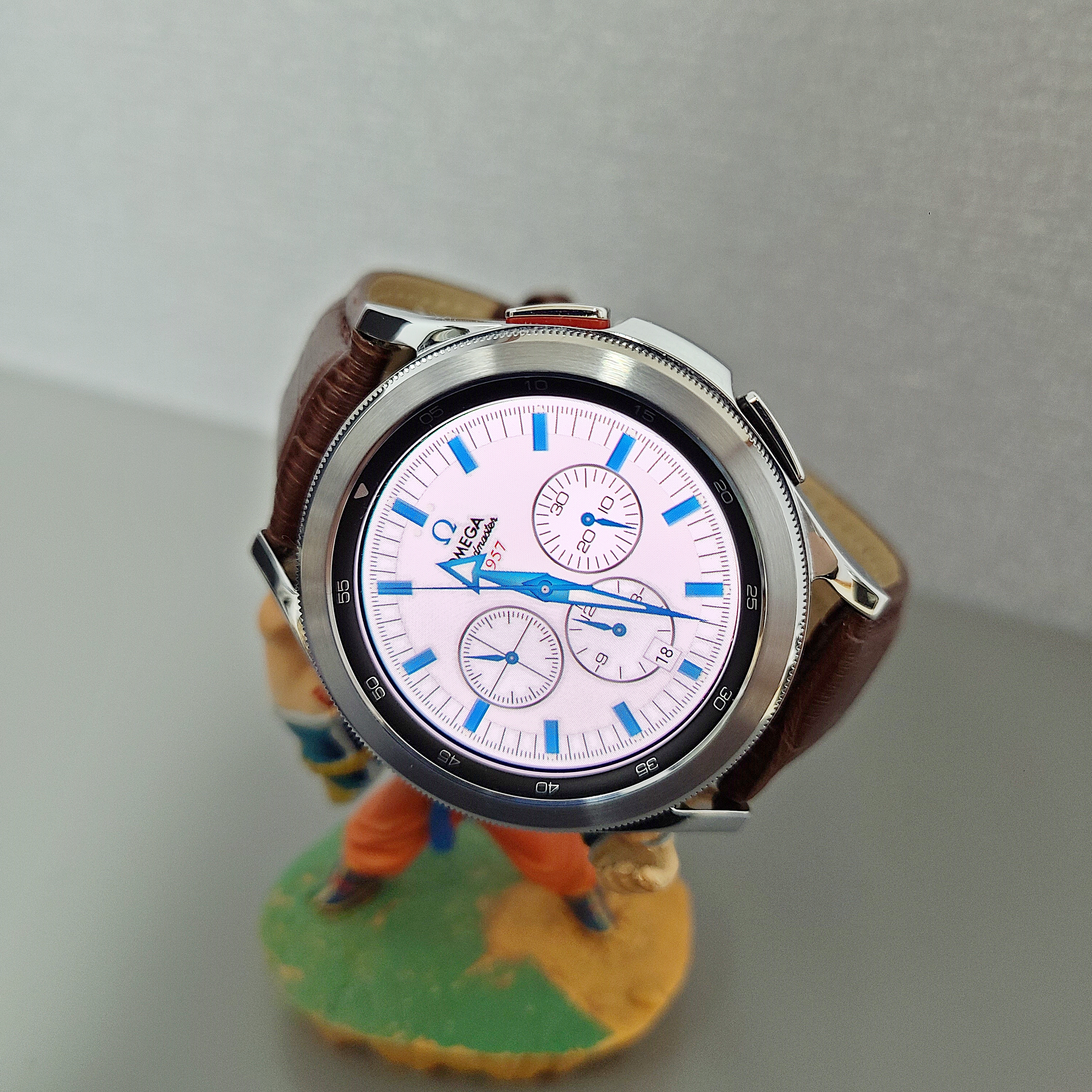 다이얼 인덱스와 시분침, 크로노그래프처럼 보조 다이얼 3개, 날짜표시까지 만들었으나