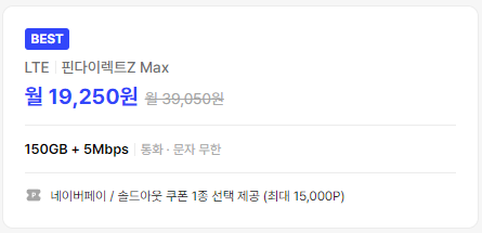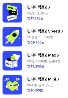 제가 선택한 요금제는 핀다이렉트Z Max 입니다