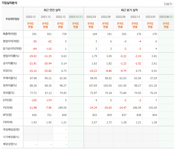 영업이익과 당기순이익에서 다소 불안함을 보여주고 있다.