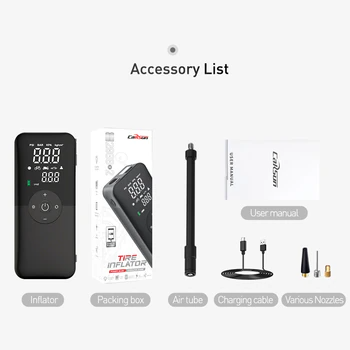 CARSUN Rechargeable Air Pump Tire Inflator Portable Compressor Digital Cordless Car Tyre Inflator For Bicycle Balls;