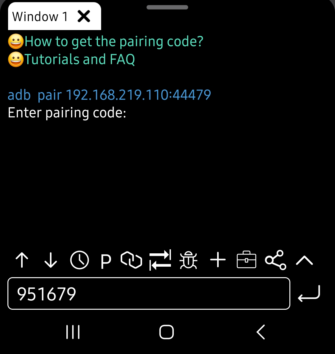 설치한 ADB Shell 앱을 실행시켜주고 Pairing Code(페어링 코드) 스위치를 켜줍니다.