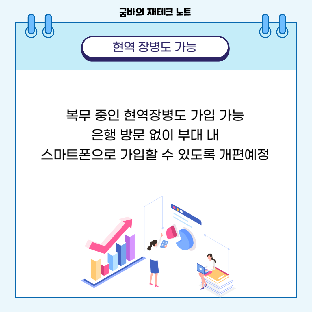 은행 방문 없이 부대 내에서 스마트폰으로 가입할 수 있도록 추진중
