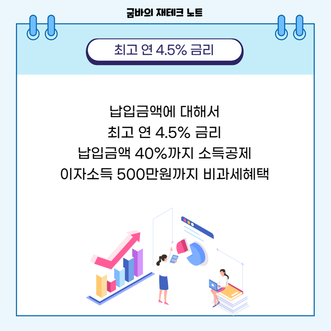 금리는 최고 연 4.5%, 납입 금액의 40%까지 소득공제 혜택을 제공합니다
