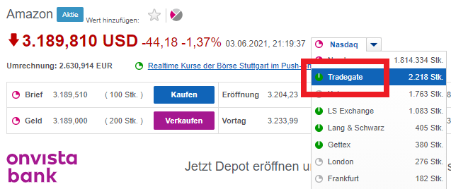 위의 onvista 라는 사이트에 접속해서 미국주식 종목을 검색해서 확인할 수 있다
