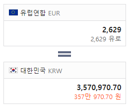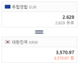 바로 유로화를 보게되면 쉽게 가격이 짐작되지 않기 때문에 환율계산기를 통해서 달러 혹은 원화가격으로 보면 되는데