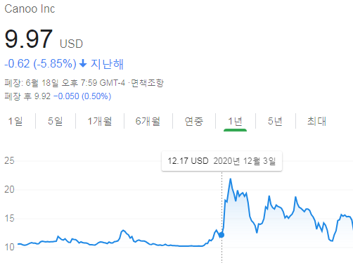 스팩주식이었던 HCAC의 티커가 카누(Canoo)의 GOEV 티커로 변경되어 나스닥에 상장한 것은 20년 12월 22일이다.