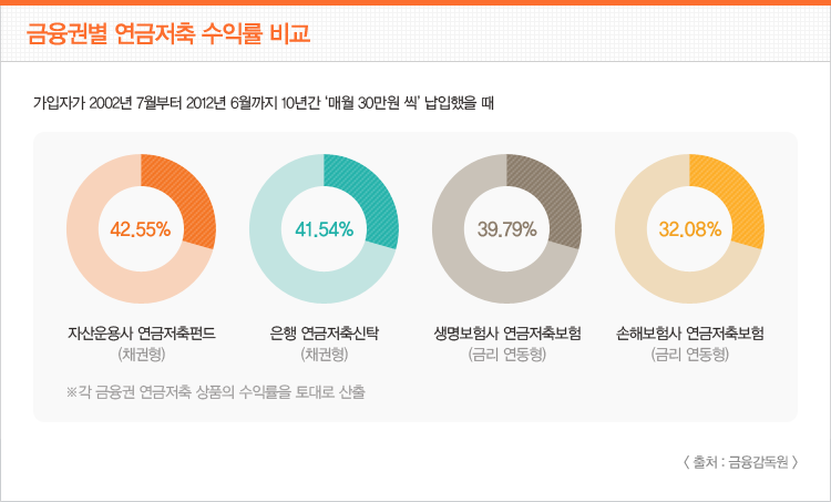 투자자의 성향에 따라서 직접 선택할 수 있고, 복수선택이 가능하다는 점에서 연금보험 보다 높은 수익률을 기대할 수 있다.