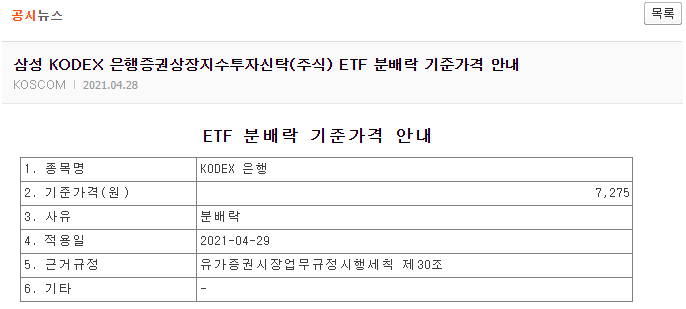 ETF는 기초지수를 추종하여 ETF 가격에 반영되기 때문에