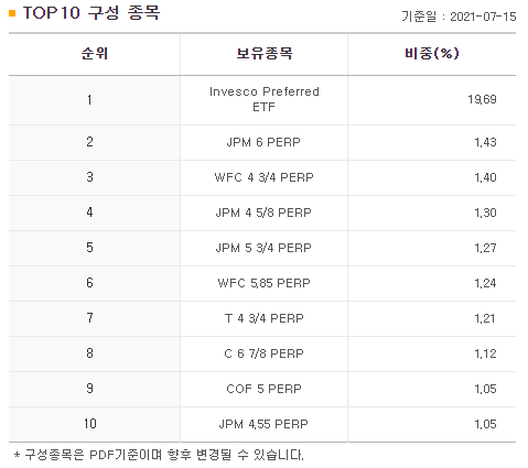 주요 구성종목의 약 70%가 미국 우선주로 이루어져있다.