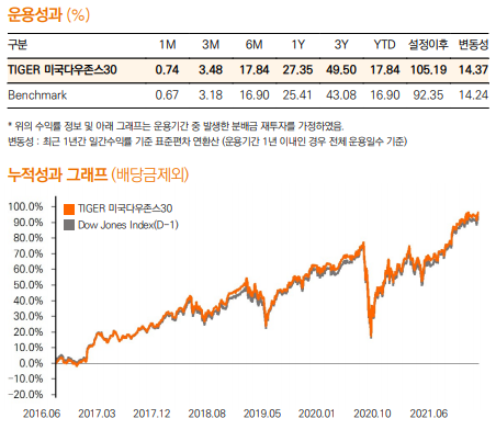 국내상장 해외ETF 중에서 미국 다우존스 지수를 추종하는 유일한 상품
